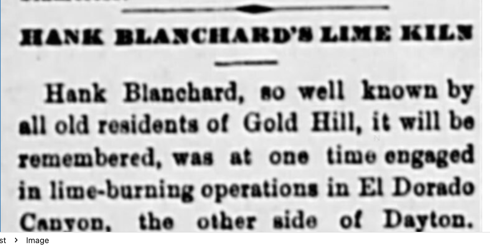 Hank Blanchard moved south to Bodie and built and operated the Mono Lime Kiln between 1880 and as late as 1900. Between the 1880s and 1890s, Hank Blanchard owned and operated the Bodie Aurora Toll Road.