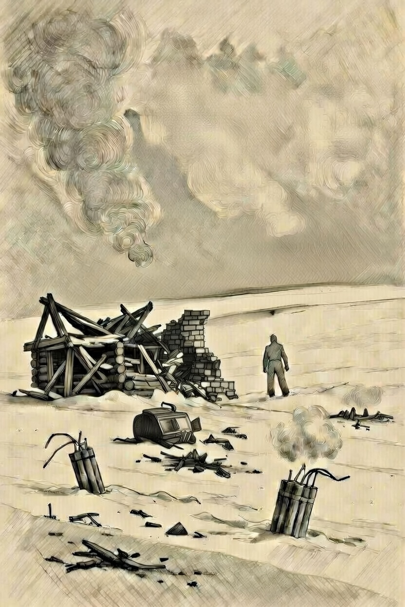 One man devised a plan. He took a piece of round firewood and gouged out the center. He stuffed in the void with a ¼ stick of dynamite, then filled the end with shavings to cover his handiwork. He placed the stick on his woodpile, in a spot where Bill was likely to swipe it.