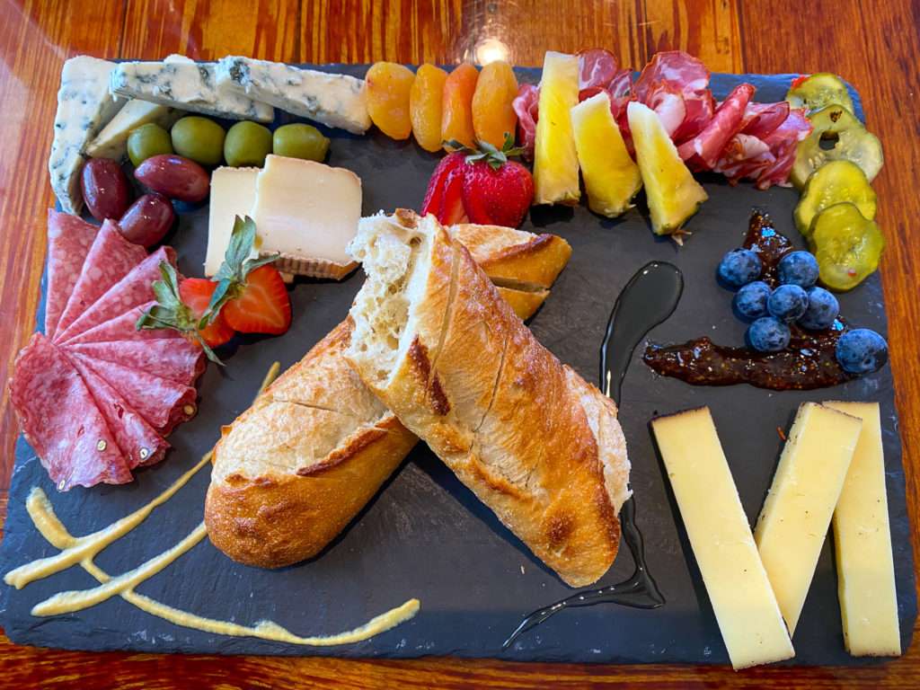 I always let the staff pick the meats and cheeses for my custom charcuterie tray. I told them I would eat anything but brains, eyeballs, and durian fruit (I had it once, it was disgusting, and the taste never disappeared). They always have fun choices; this time, my favorite was a smoky blue cheese.