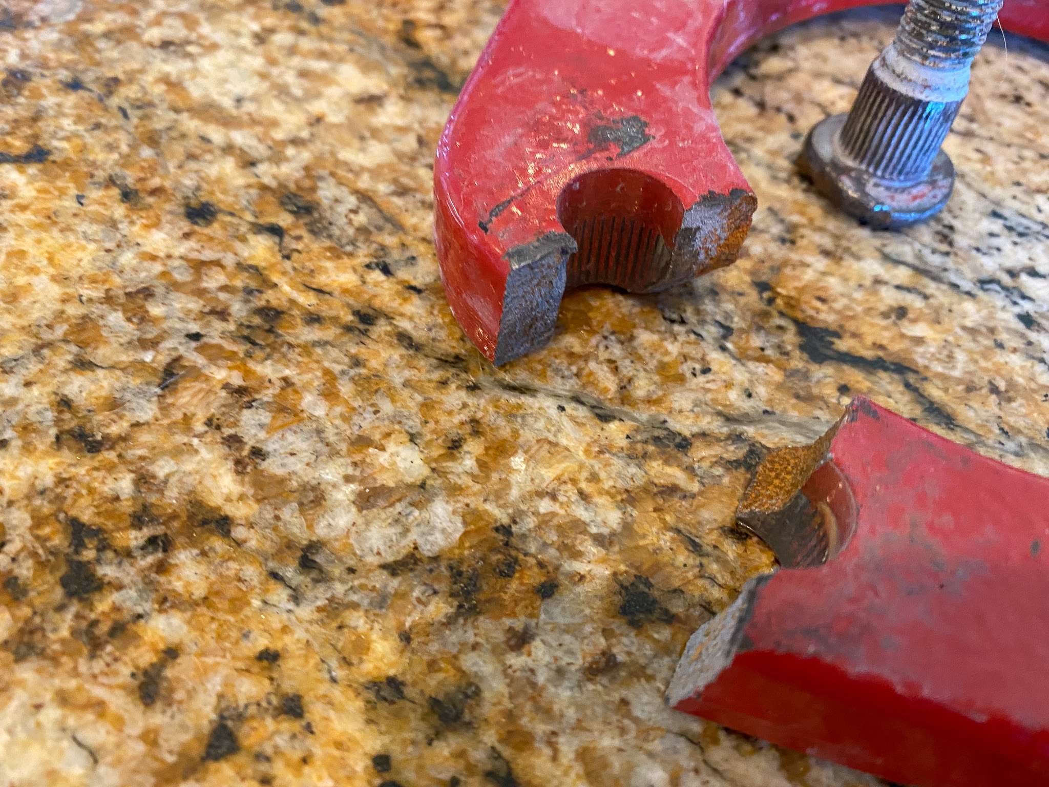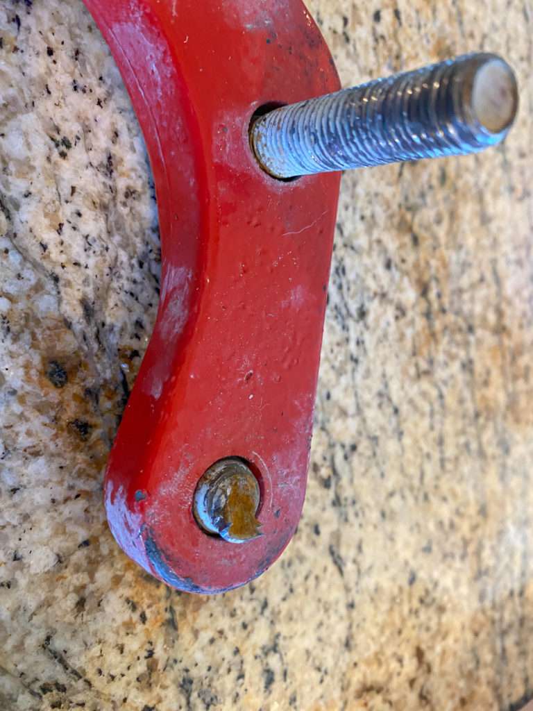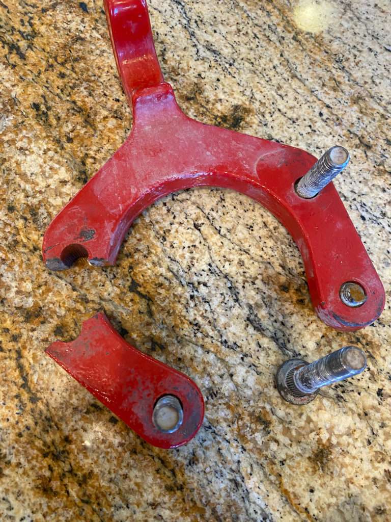 Thank you, Steve and Jeff, for repairing the damage from my run-up Pevine. We thought a bolt was missing from the bumper, but it sheared off when I was yanked out. The extraction hook also snapped in half. The bumper is repaired and back in place.