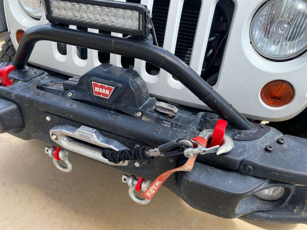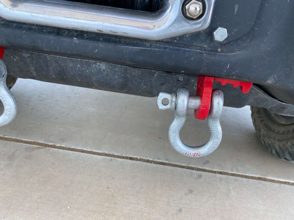 Steve added a second set of D rings, which mount right to the frame. They can support more weight and are at a better angle. In addition, they can be used as a lift point for the hi-lift jack.