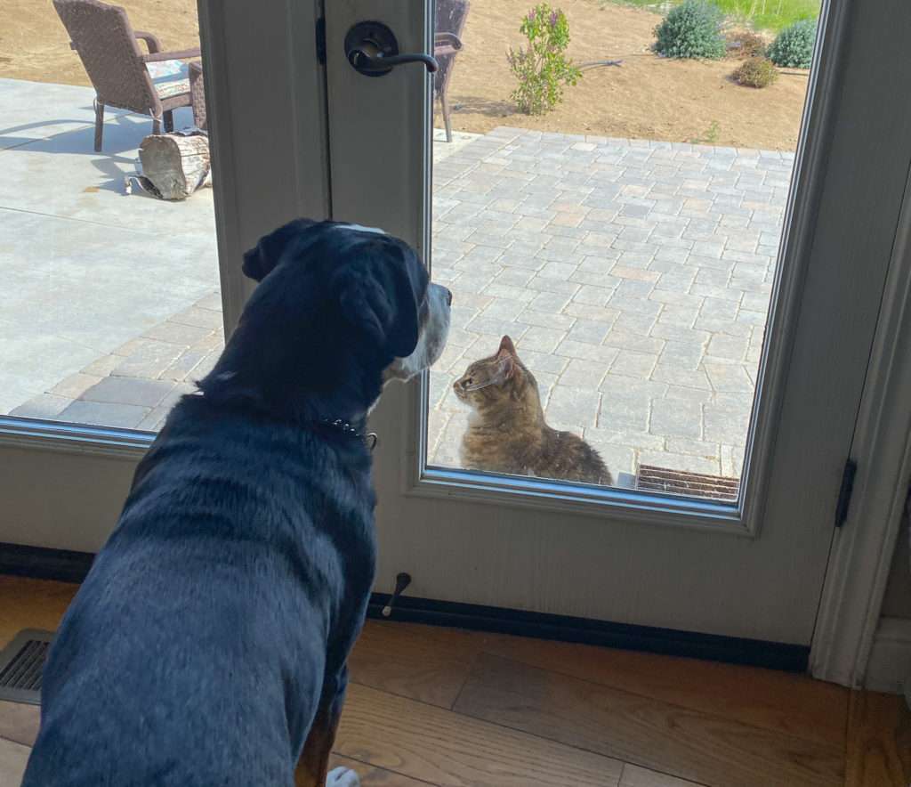 Miss Edel was barking, and I couldn’t figure out why. She was telling me her sister, Eris, wanted to come inside. Harra, the other cat, led me around the house to do her bidding. Both cats were dumped at the ranch; they were the few that made their way to our home. Usually, they are hit on the road or attacked by predators. Eris and Harra are the lucky two and now live in the lap of luxury.